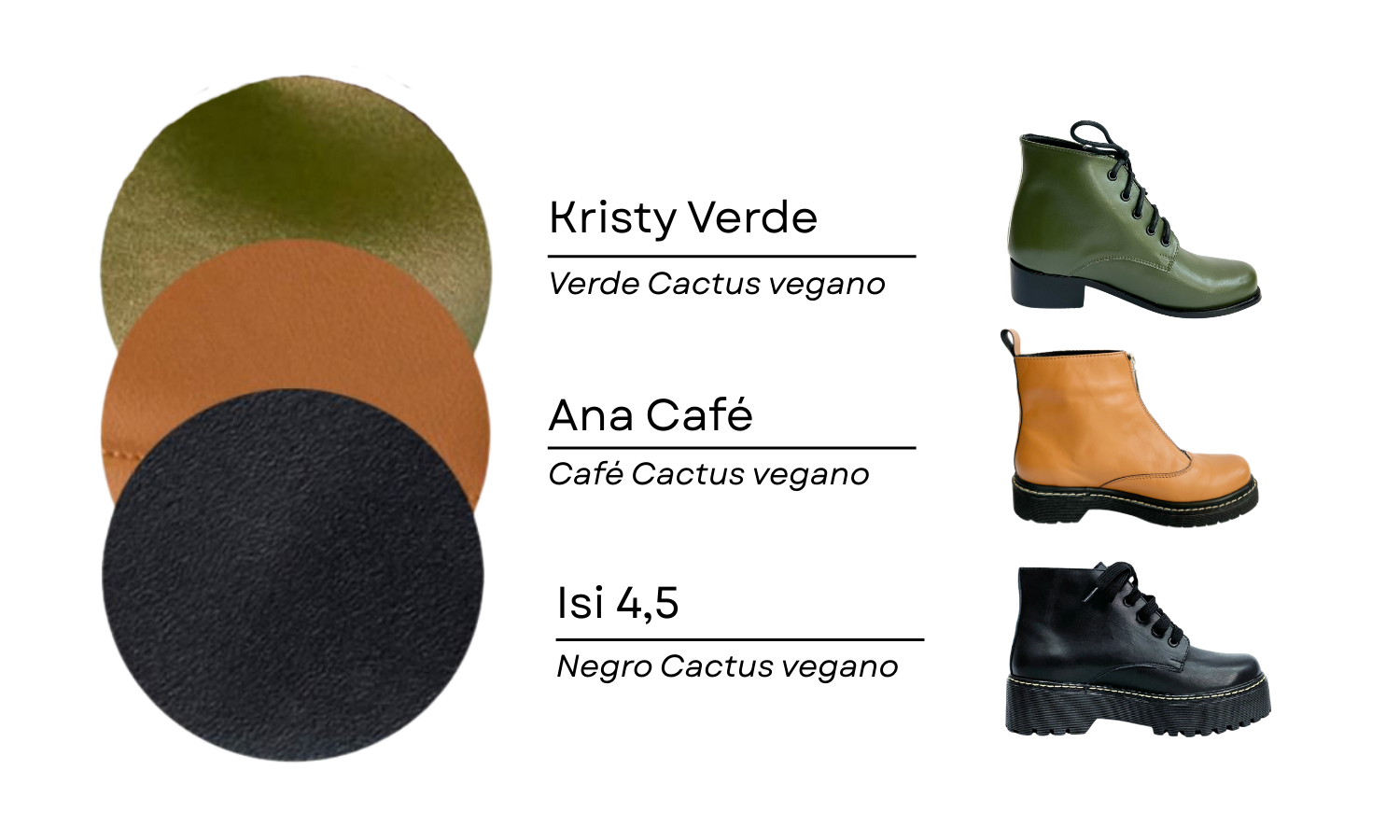 ¡Recuerda que también puedes elegir cuero vegano! Estos son los tres colores disponibles.